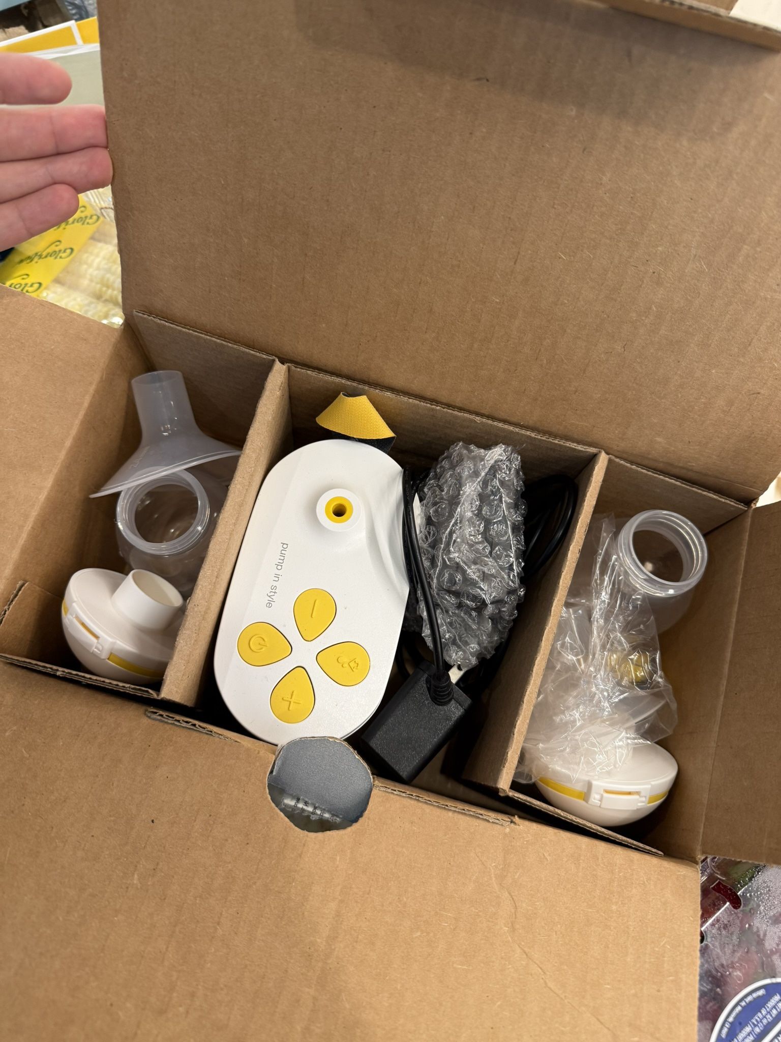 used 2 times but i wasn’t a pumper all the pieces work and is included in photo comes with a box of unused breast pads