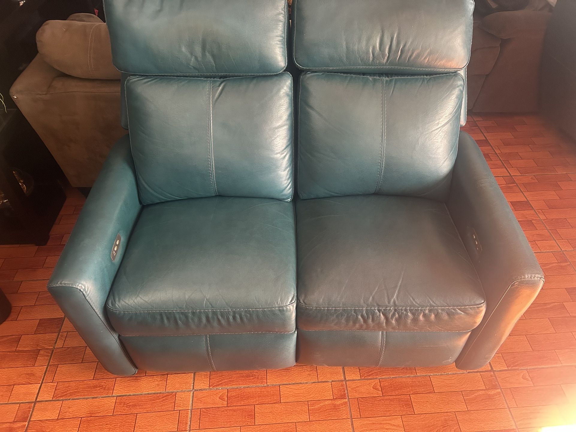 Green leather reclinar sofás