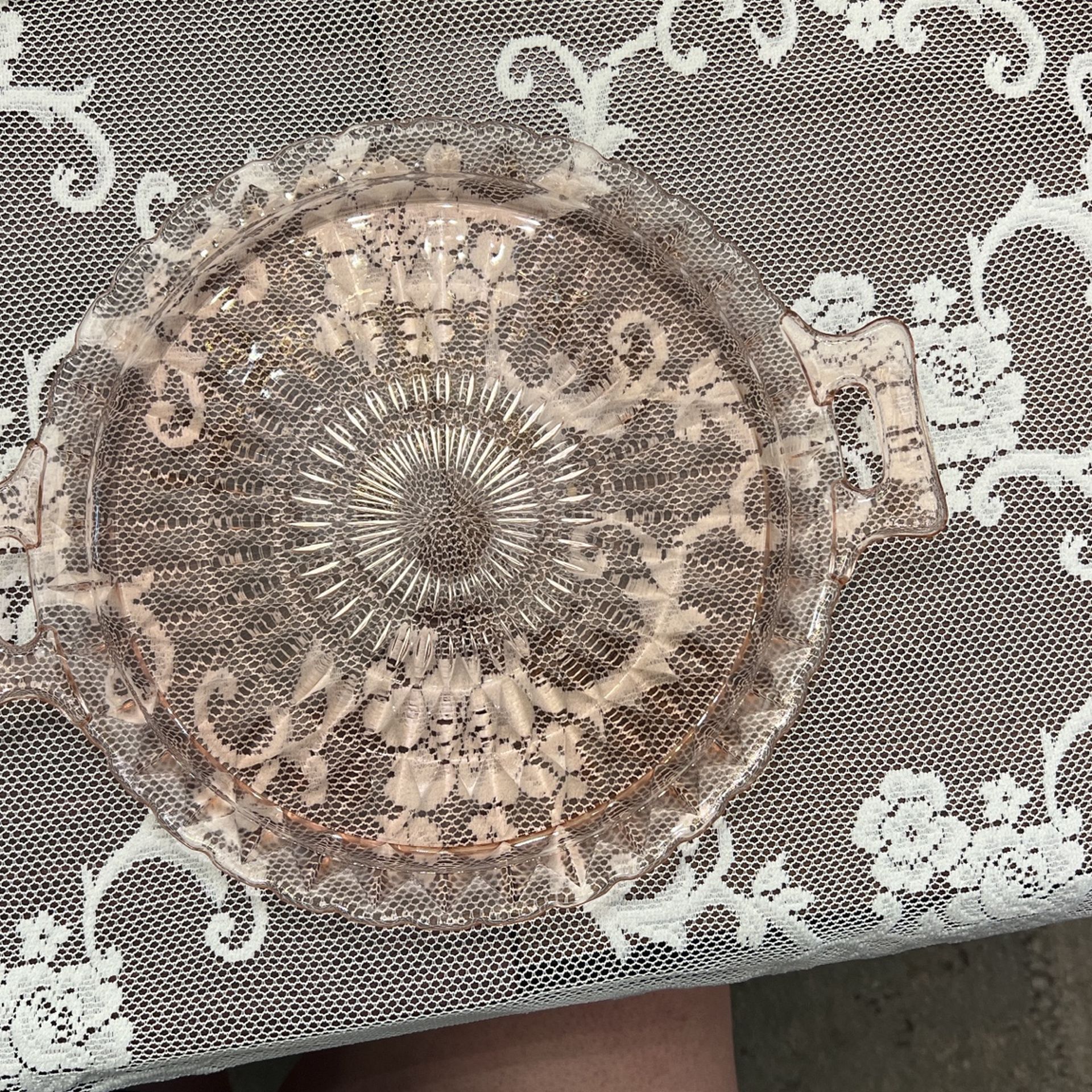 Beautiful depression glass piece just over 12 inches, including the handles.