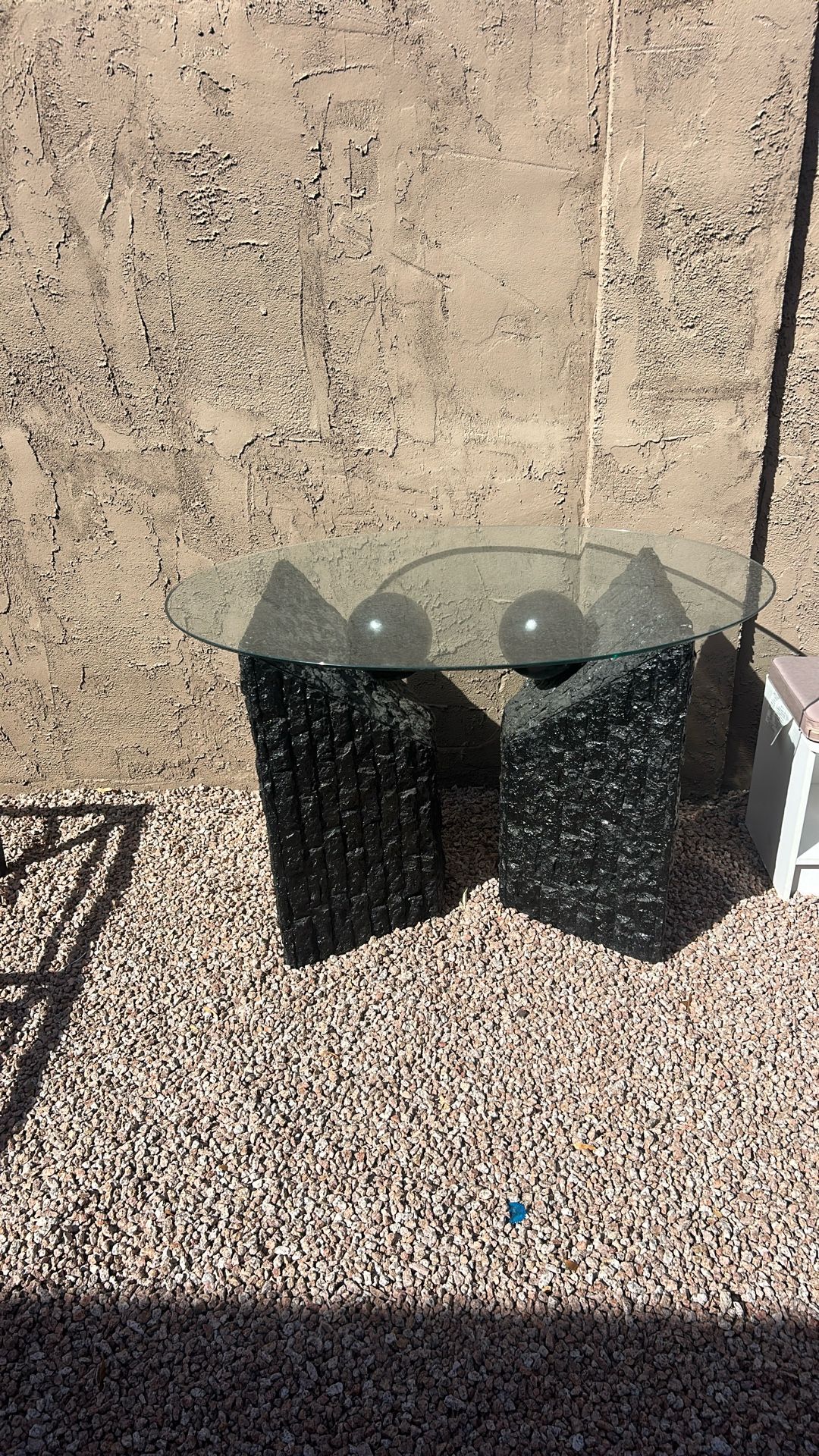 Glass table great condition, little dusty, glass in great condition, no cracks or chips, pedestal are black, but can be painted any color, asking $60