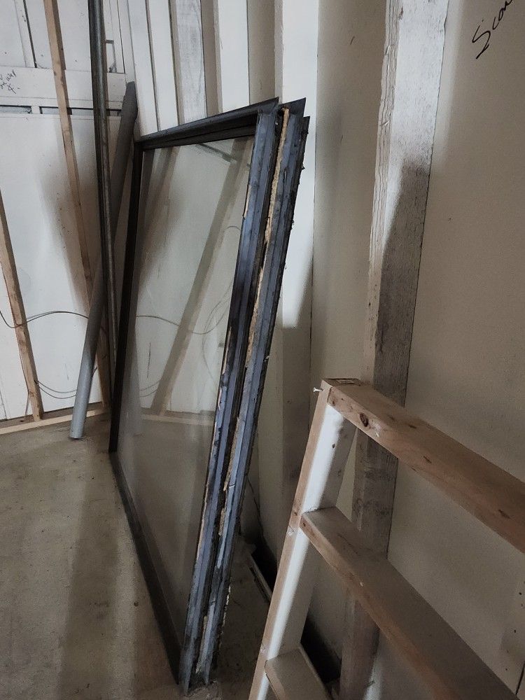 They were pulled out of store front, very heavy new glass installed recently and in great shape. $60.00 for both Size 55.5 inches X 62.5 inches