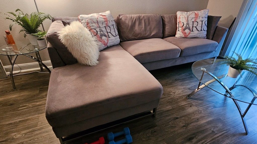 MOVING SALE MAKE AN OFFER - XL Grey Velvet Sofa with Chrome Feet