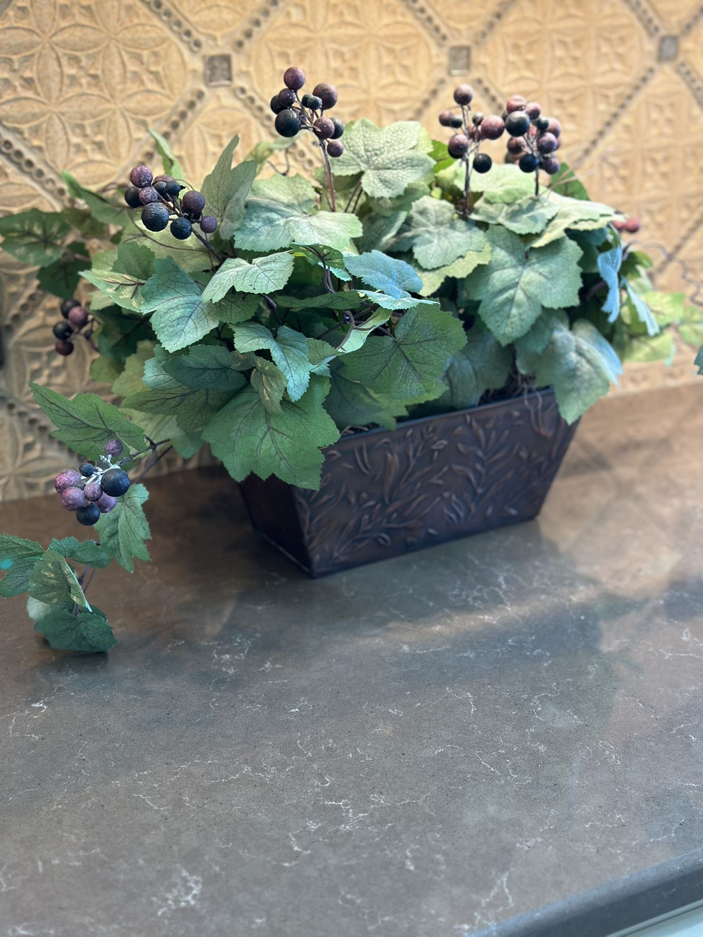 Grape Leaf Silk Plant in Bronze Chest