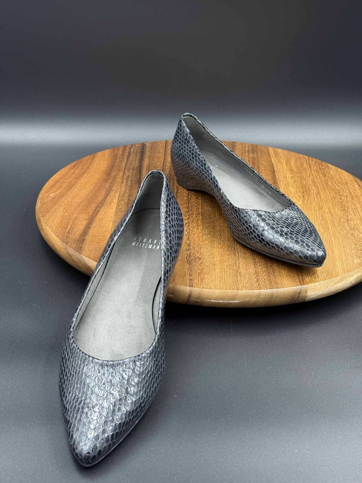 Stuart Weitzman SZ 8 LINA 225945 Snakeskin Flats Black Pointed Toe Comfy Shoes