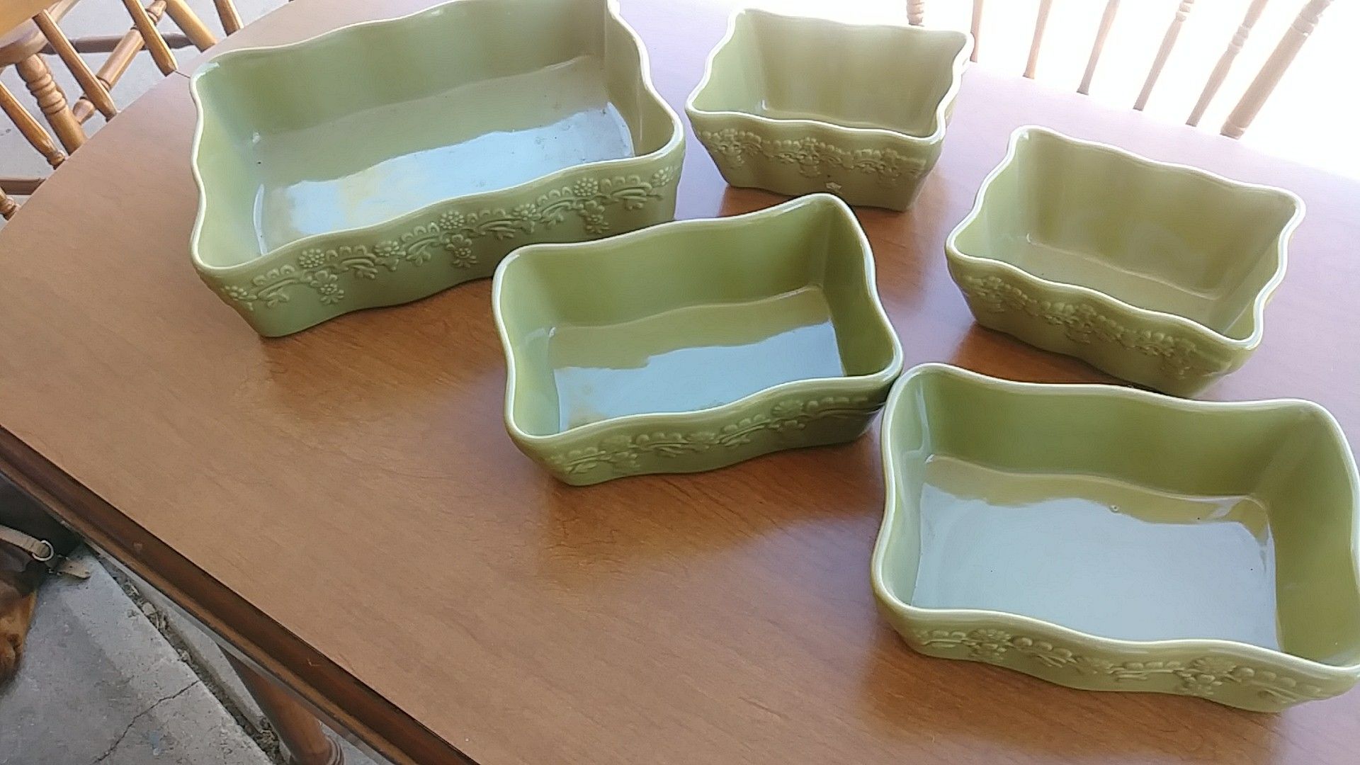 EXCELLENT CONDITION. 5 PIECES. TEMP-TATIONS PRESENTABLE OVENWARE BY TARA. COUNTRY LACE.