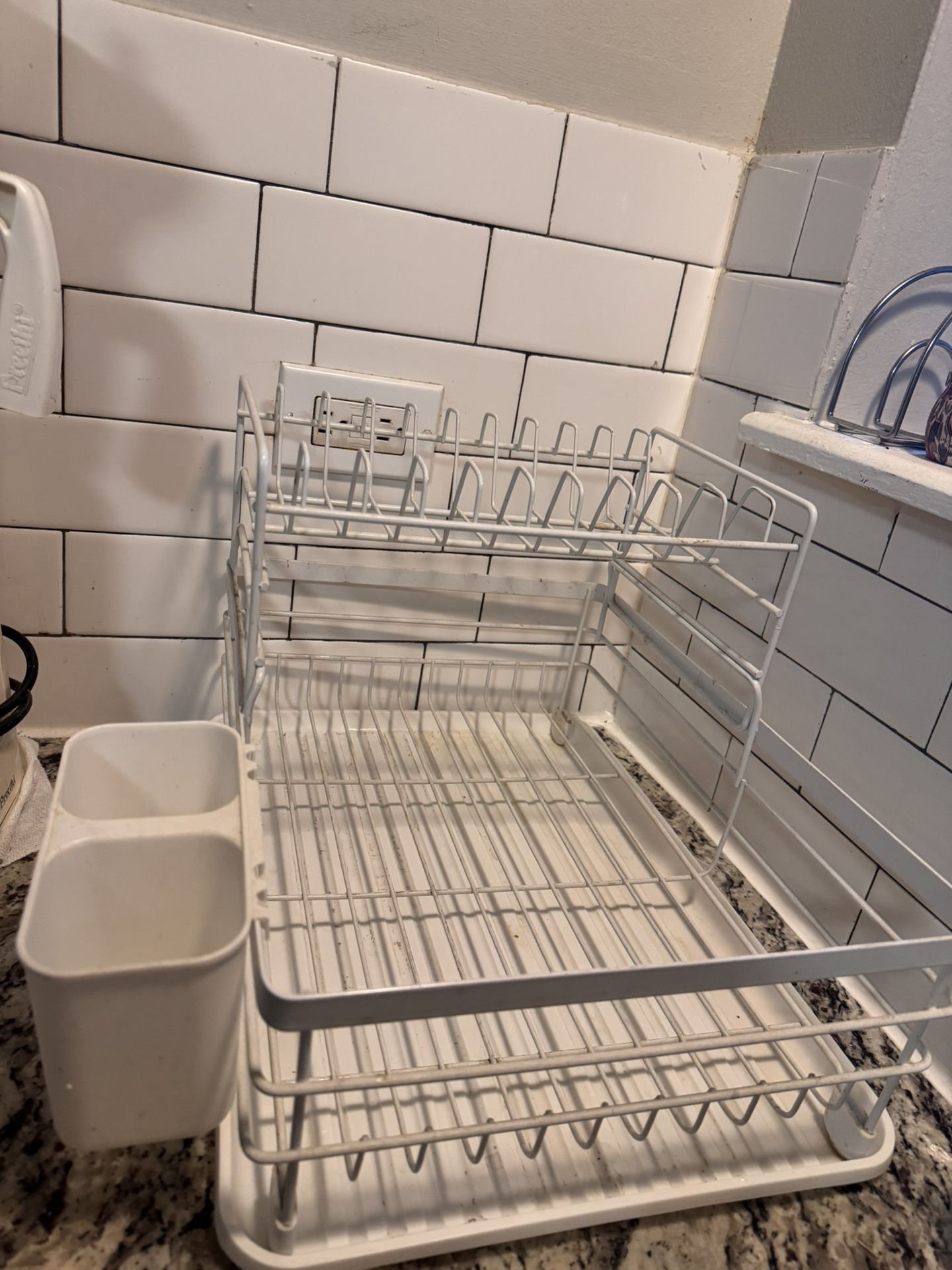 Sturdy white dish drying rack with utensil holders
