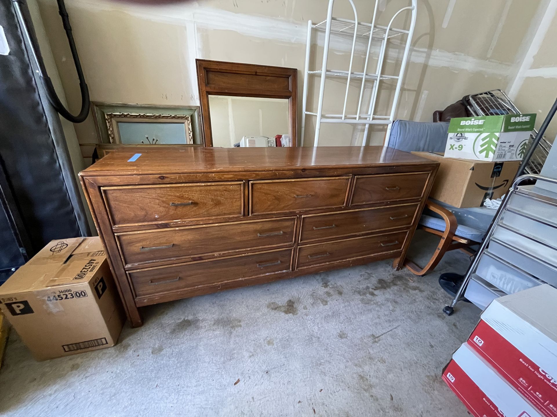 Ready for a new life. Dresser and side table. Solid wood! Matching mirror that can mount to dresser.