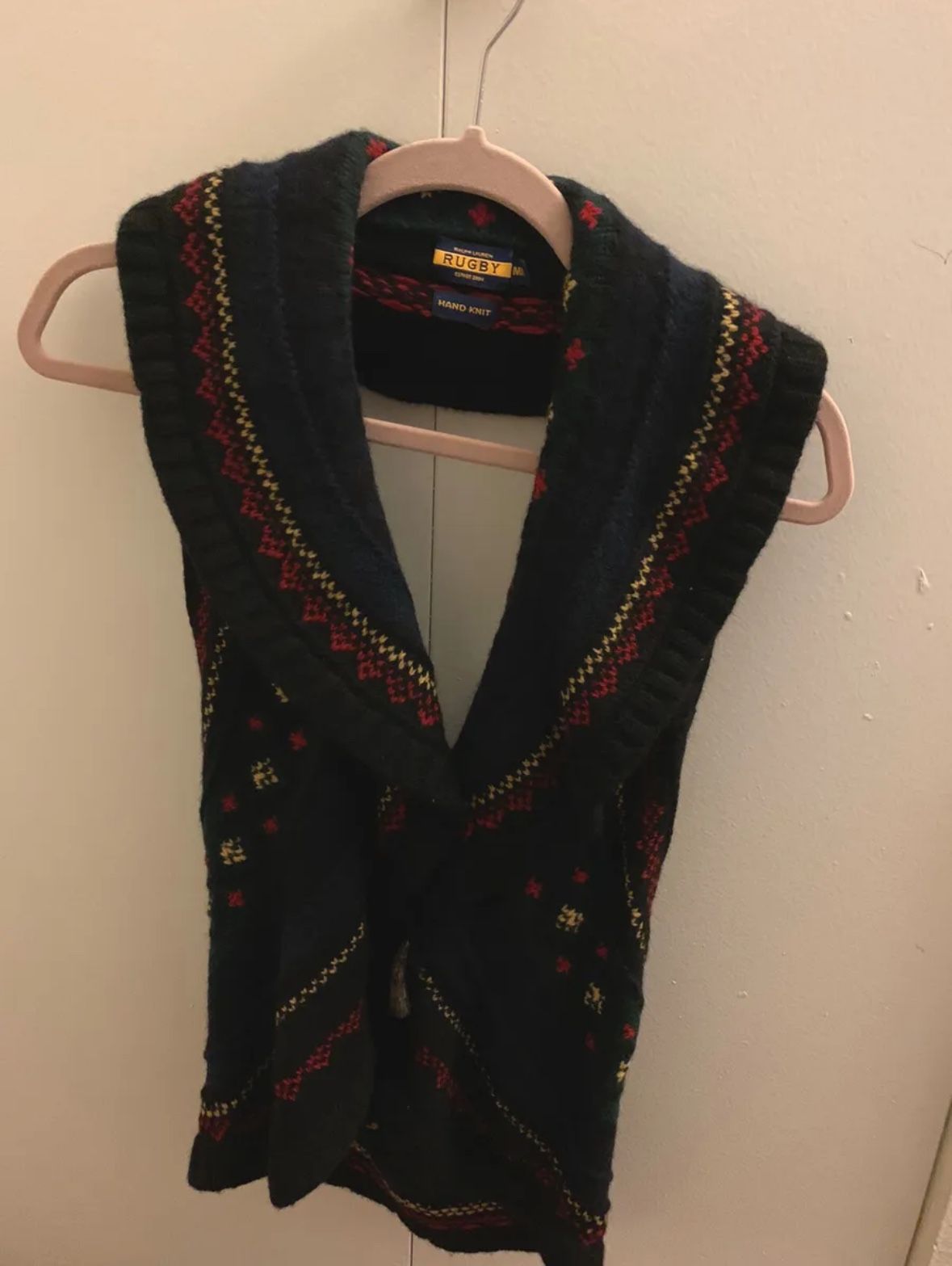Ralph Lauren Rugby Hand Knit Vest Size M/L. Condition is "Pre-owned". From a pet free and smoke free house. It’s almost like new. I only wore one or two times.