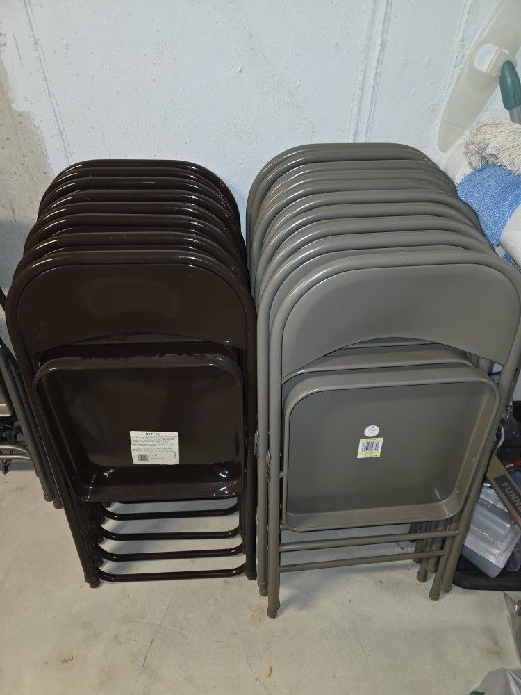 Like new 24 metal folding chairs. 16 are light brown and 8 are brown.