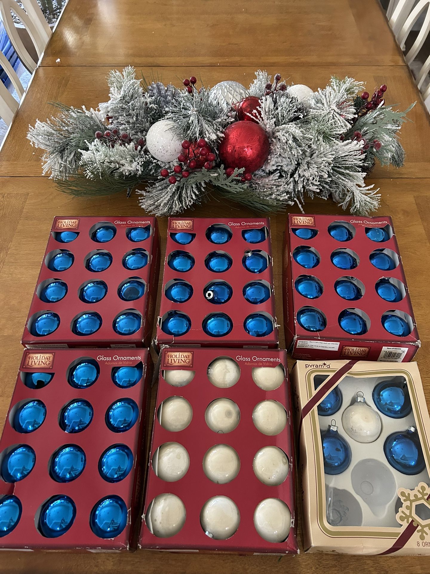 52 blue and 13 white glass ornaments (71 total) for $10).