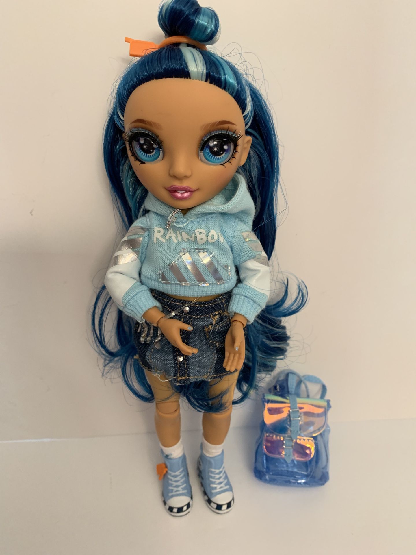 Here is a Rainbow Junior High Series 1 Skyler Bradshaw Doll. Doll comes in complete original outfit and accessories including Shoes and Backpack. Item comes from a No Pet and Smoke Free home. Doll has only been Displayed and Never played with. CASH ONLY PLEASE! Thank you for looking,please checkout my other Rainbow High items for sale π