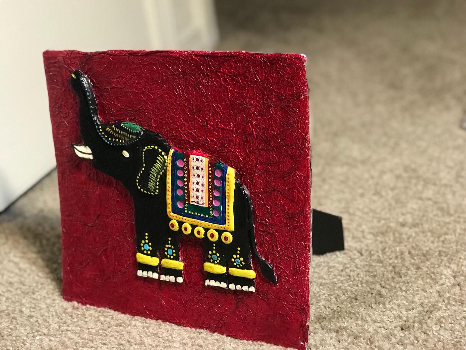 Clay mural painting used items in this painting:Aluminum foil,card board, clay,acrylic painting.