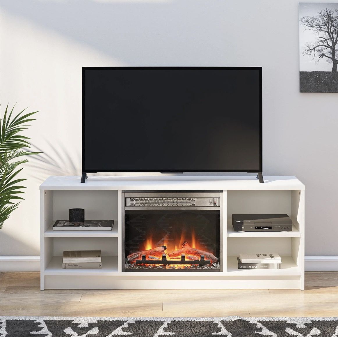 Fireplace TV Stand, for TVs up to 55", White