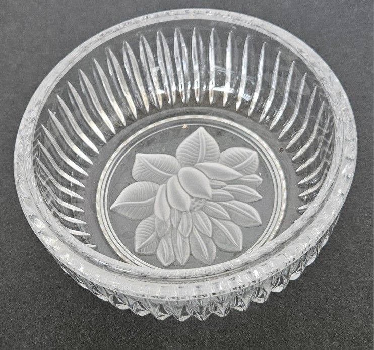 Lead Crystal Salad Bowl Frosted Lotus Flower Pattern 5"