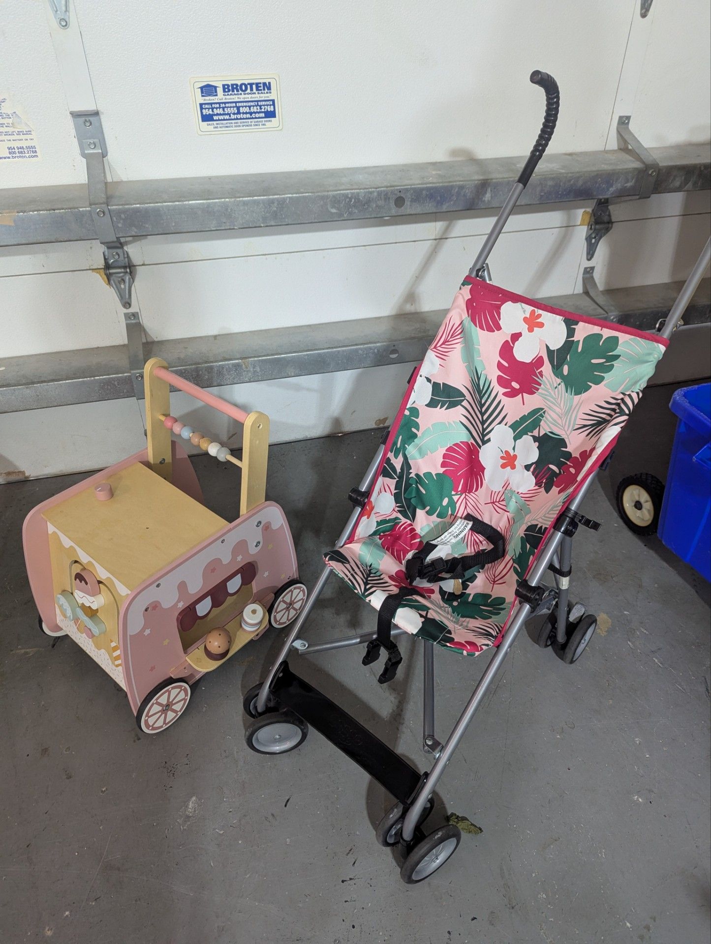 Lightweight foldable stroller and push ice cream parlor. $20 for both