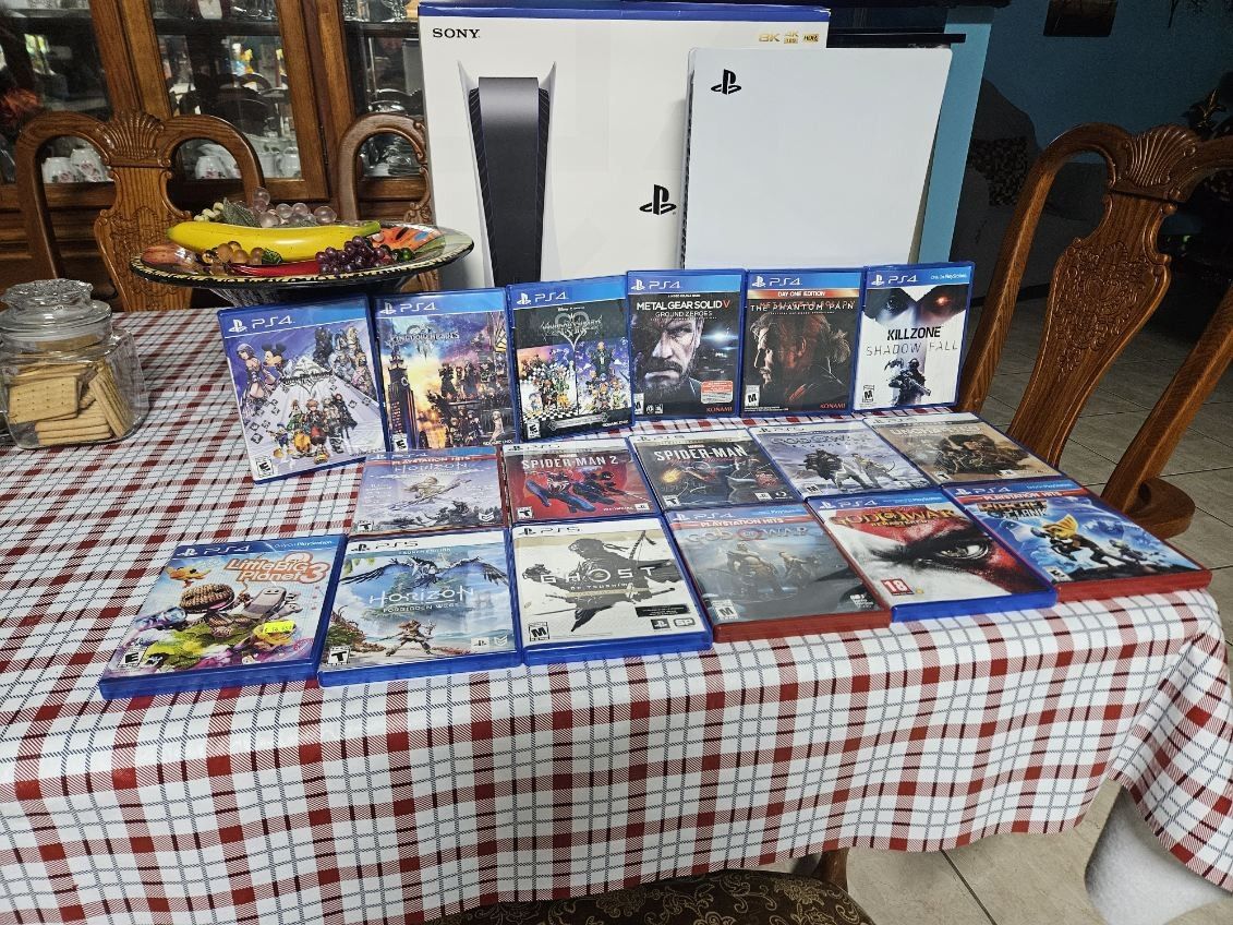 PS5 1TB , it's in good condition. Used for about a year. It comes with the original packaging including 17 games. Also a custom PS5 controller with hall effect stick sensors I had installed earlier in the year. Starting price is 600 but the price is negotiable , lowest I'll go is 550 no less. Low ballers won't even get a reply.