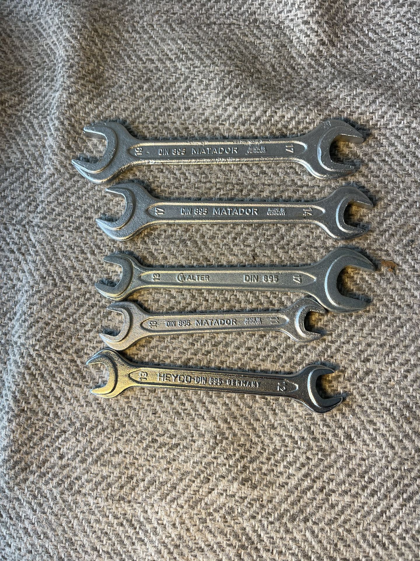 Includes several metric size wrenches stamped with Mercedes Benz name. One is from BMW. All made in Germany with absolute precision.