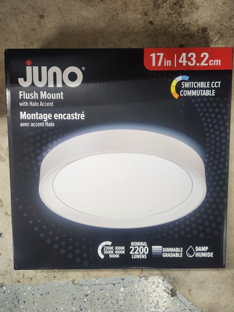 Brand new in the box Juno 17" flush mount light. Goes for $180 selling for $40 no longer need.
