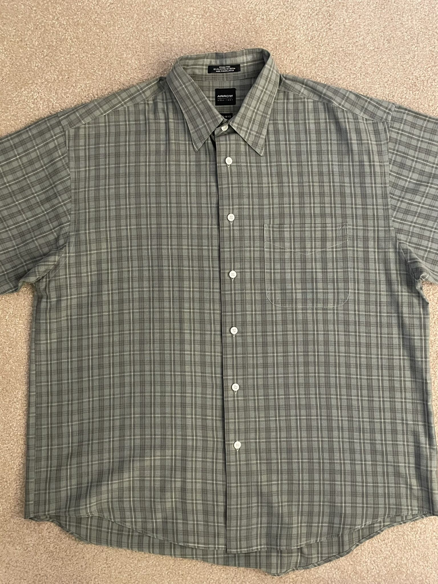Men's Arrow Green Plaid, Short-Sleeve Shirt (Size L - 16-16 1/2)