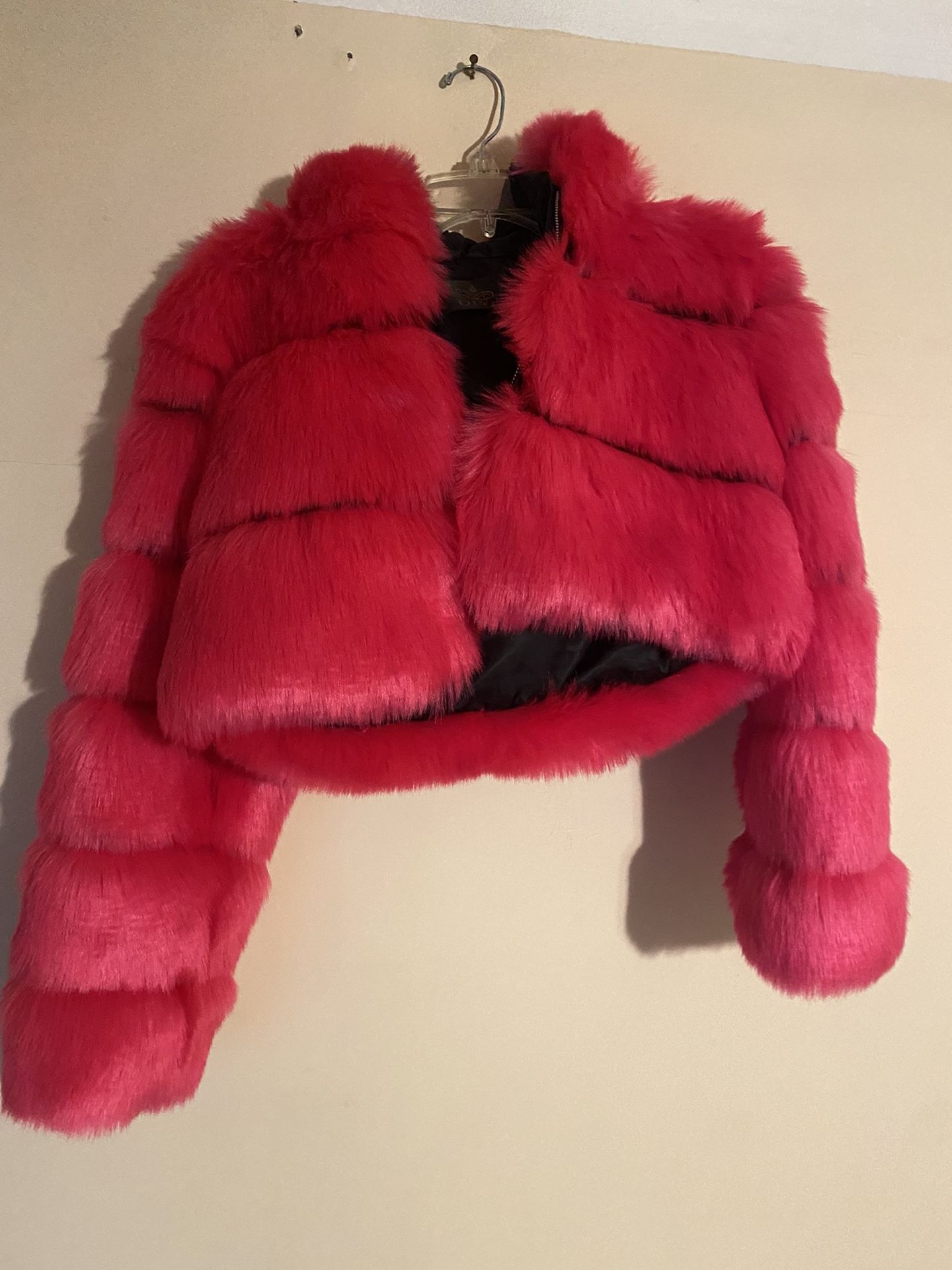 Hot Pink Faux Fur Crop Hooded Jacket Size Small
