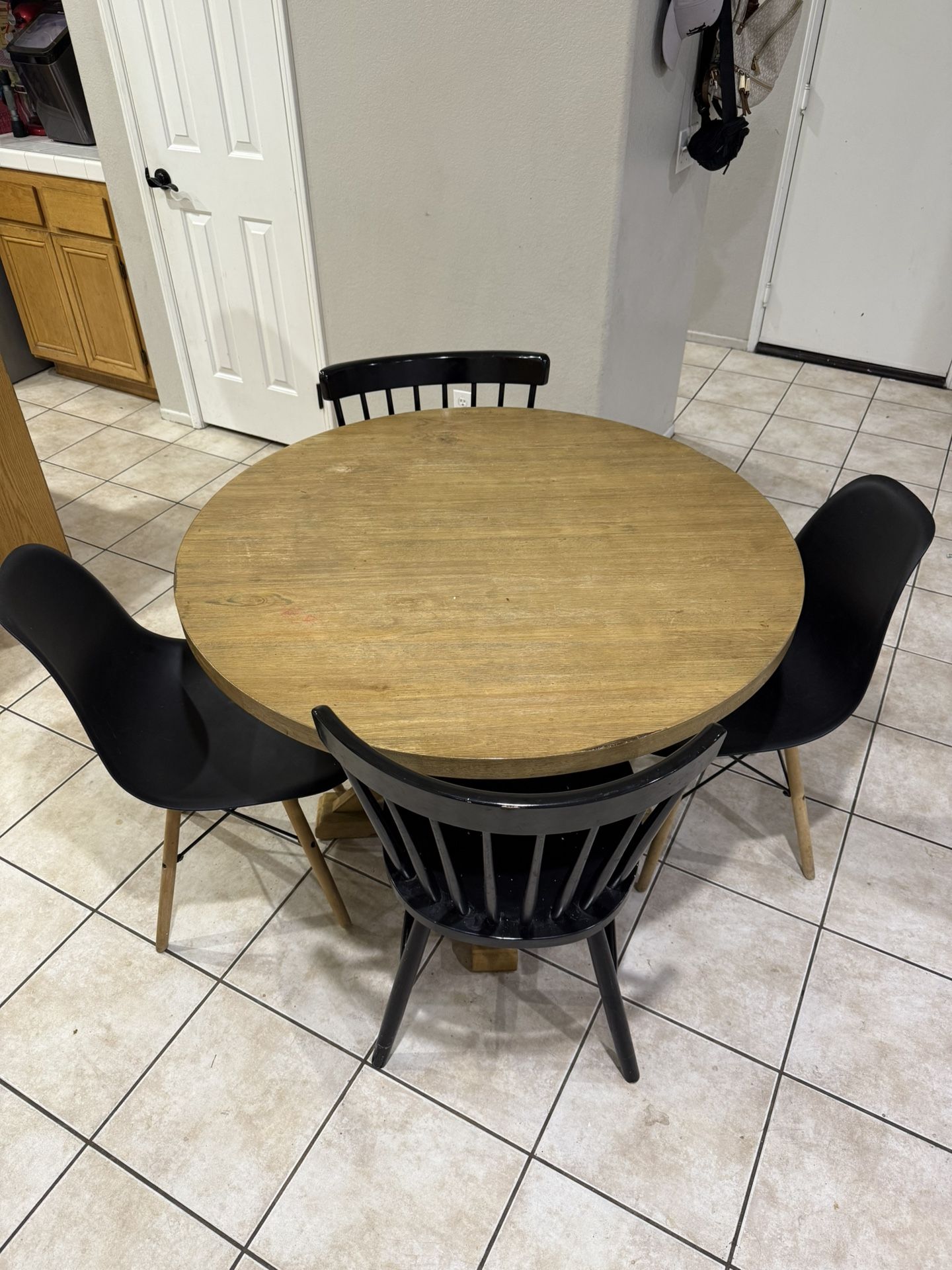 Round dining table comes with 4 chairs Used it for a-little over a year and just bought a bigger size. 42in in diameter and 30in height Its good for small spaces or a small kitchen Located in fontana