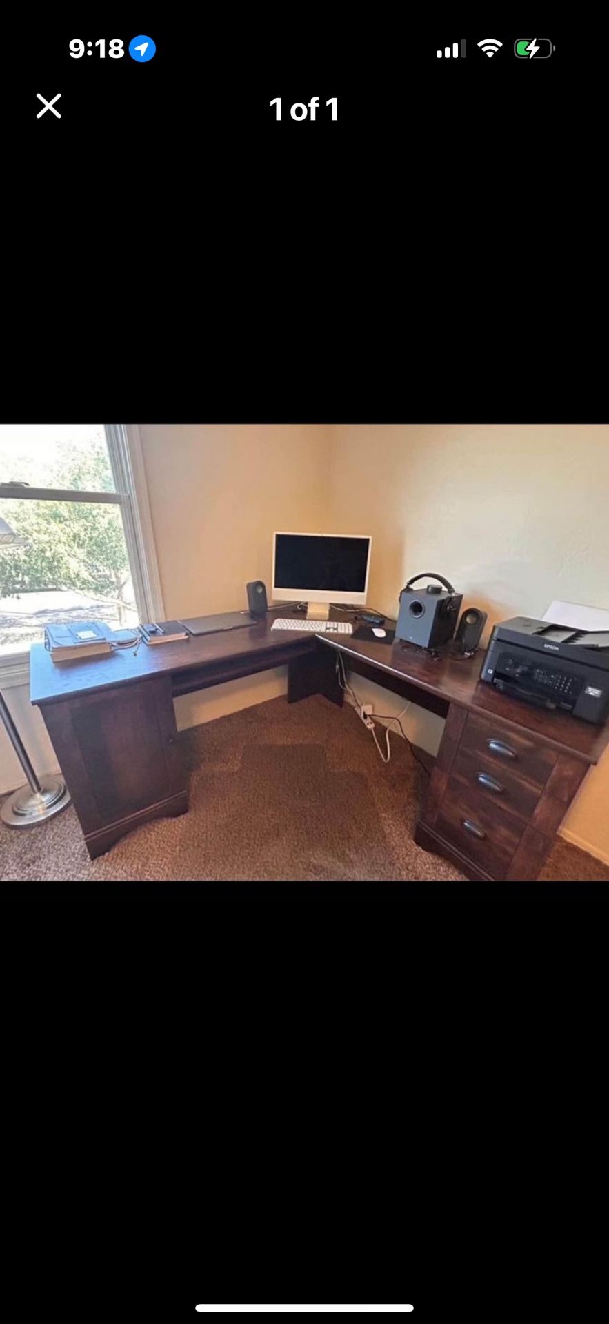 Brand new desk lots of storage. No scratches or dents. Perfect condition. Firm on price because it is Brand New. Paid $485 for it. Must Pick up and have resources to take it downstairs Dimensions 30" H x 65" W x 65" D
