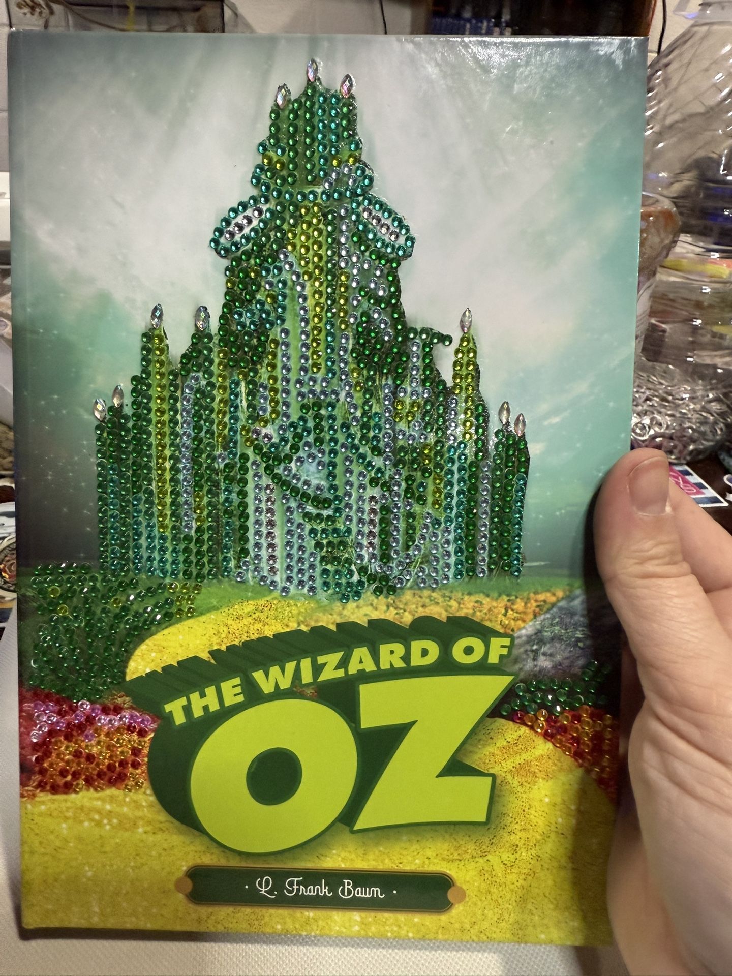 Crystal diamond painting on the cover. Beautiful illustrations inside, perfect for a Wizard of Oz fan.