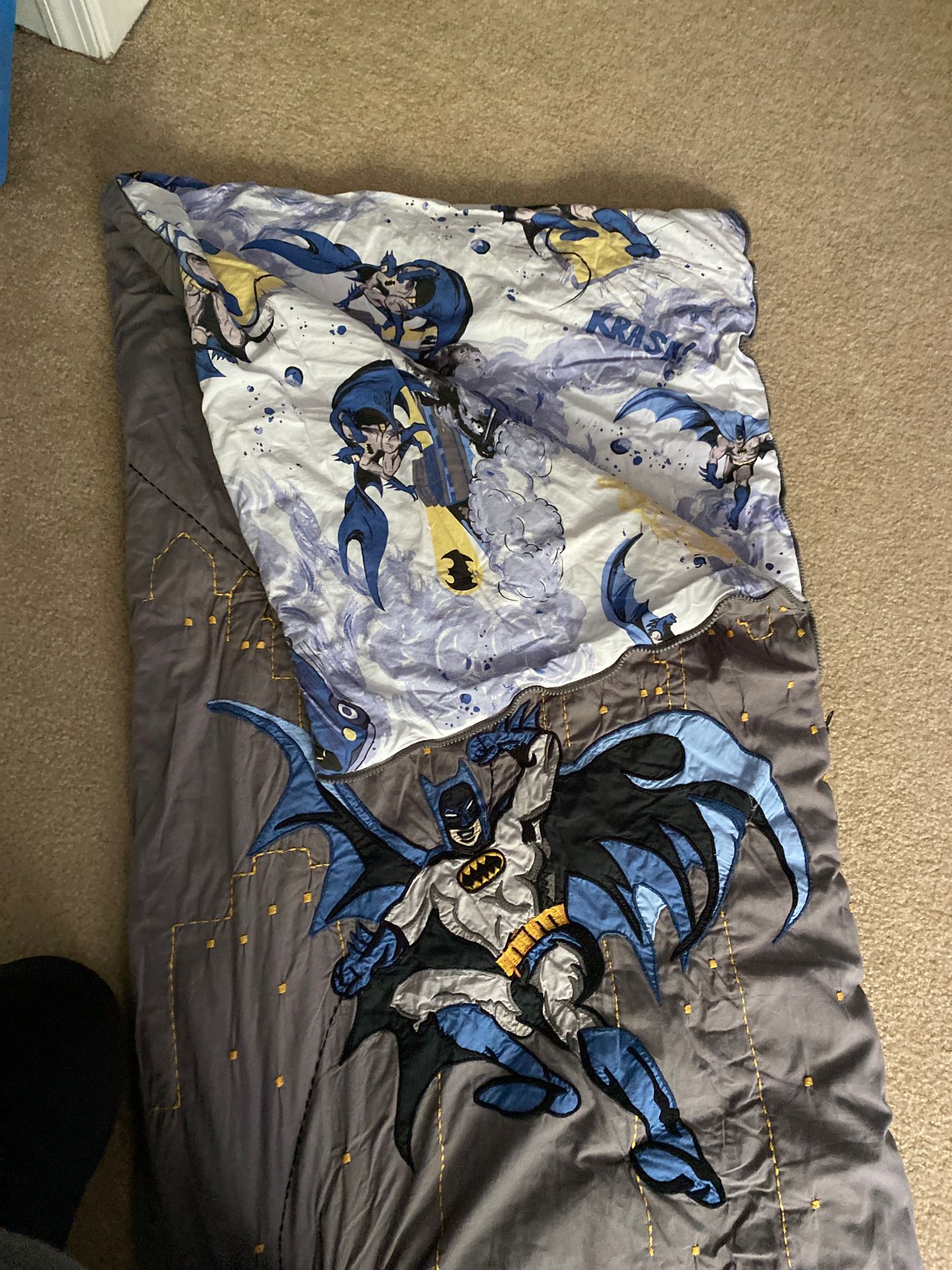Batman Kids Sleeping Bag. Smoke Free / Pet Free home.