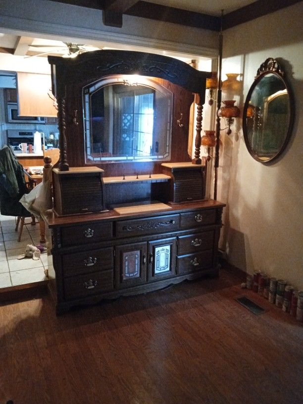 Good condition. Dresser 63.5 x 16.5 x 30 inches. 76.7 inches tall with mirror.