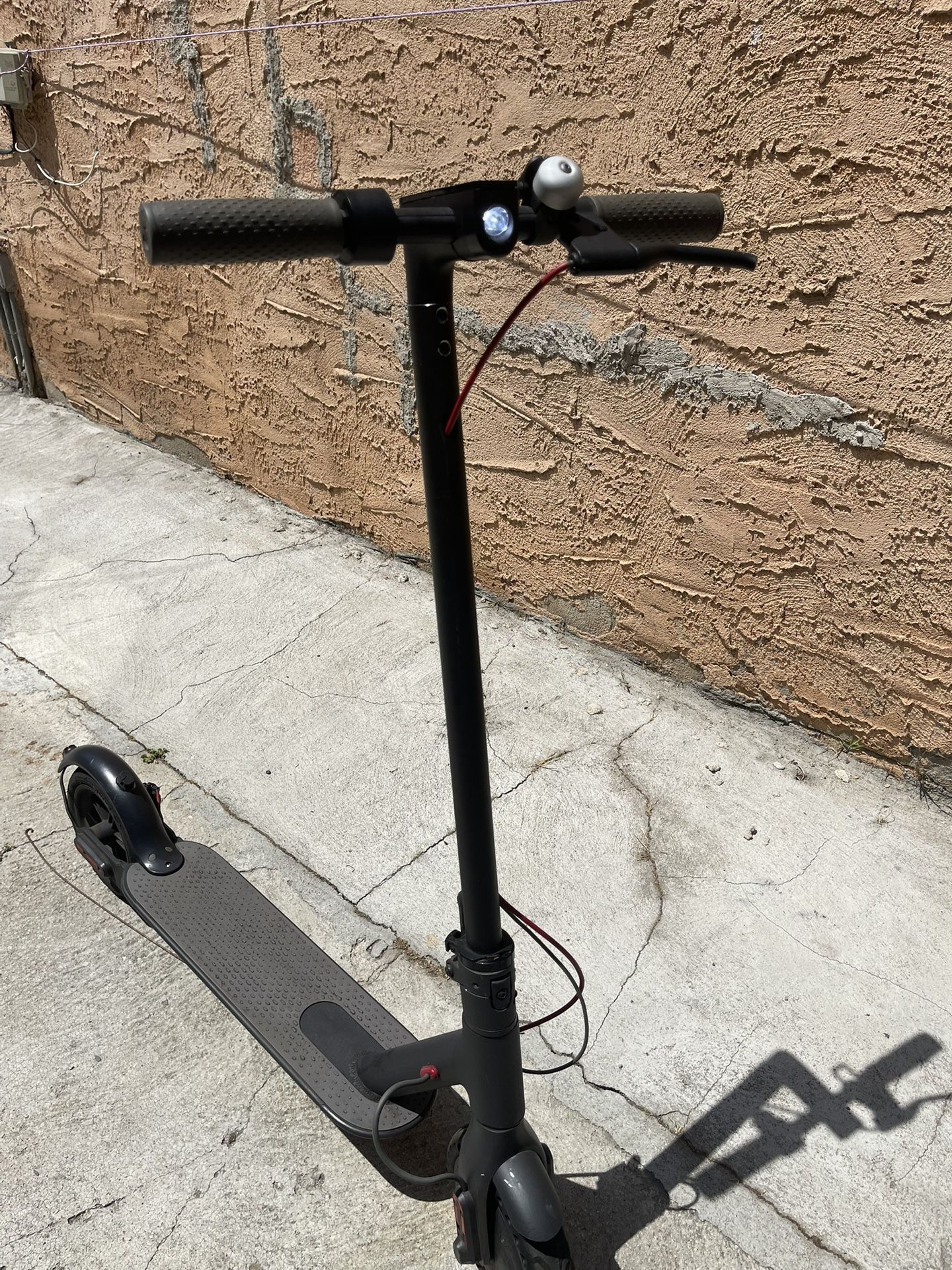 Xiaomi M365 Electric Scooter – Real (not a replica!) Selling my original Xiaomi M365. Has minor cosmetic damage (replaceable stuff) and a solid rubber front tire — no flats, no pumping! Only issue: Irregulary after turning it off, it takes a bit to power back on. Works perfectly during rides. Rides smooth. Enciende y funciona normal . No se apaga mientras la estas usando. Cuando la dejas en reposo se apaga automática o si tú lo apagas, enveses ya NO enciende asta dentro 30 minutos o mas, pero si enciende nuevamente.. Incluye cargador