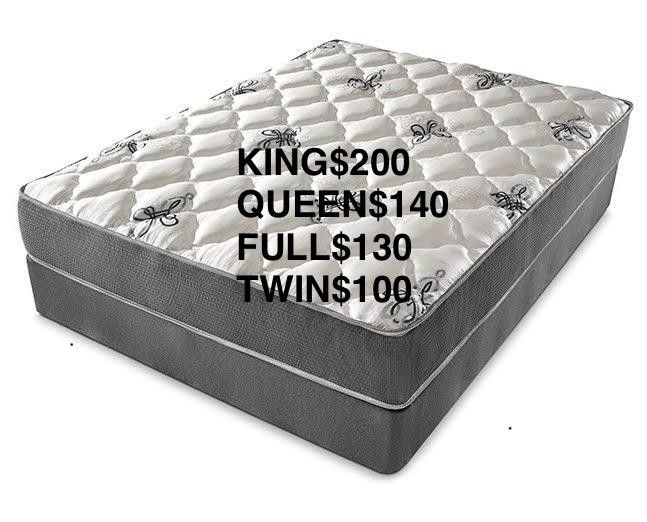 King 200 Queen 140 Full 130 Twin 100 Free box spring and deliver All brand new