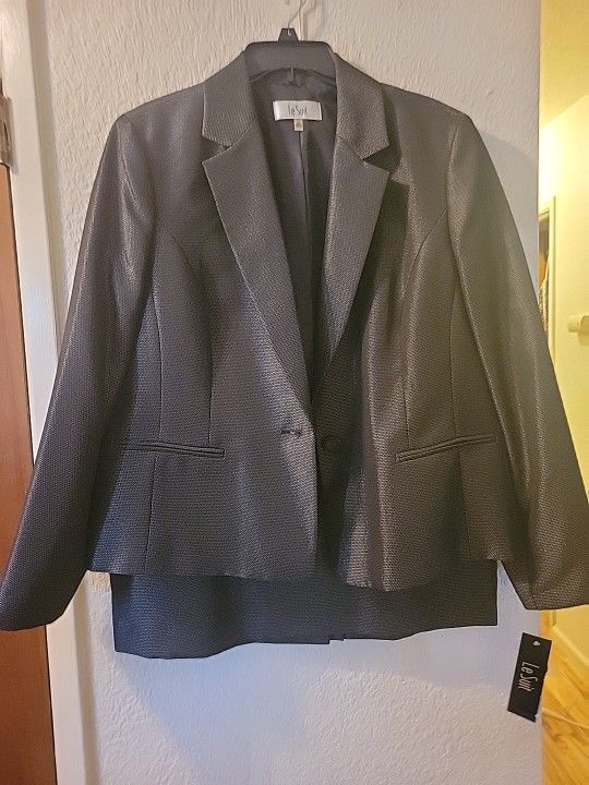 Le Suit Women's Side-Slit Skirt Suit (Black, 18)