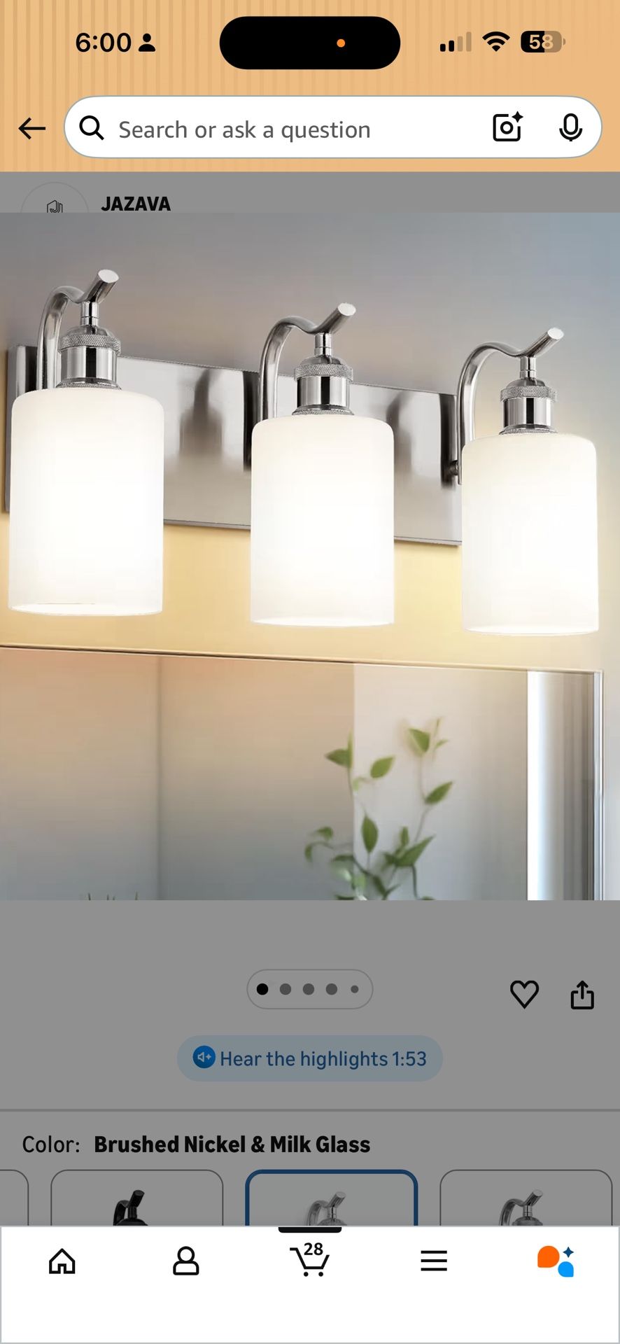 Jazava Milk Glass Bathroom Light, 3-Light Vanity Light Fixture, Brushed Nickel Wall Sconce, VL01BNW- It brand new (545)0226