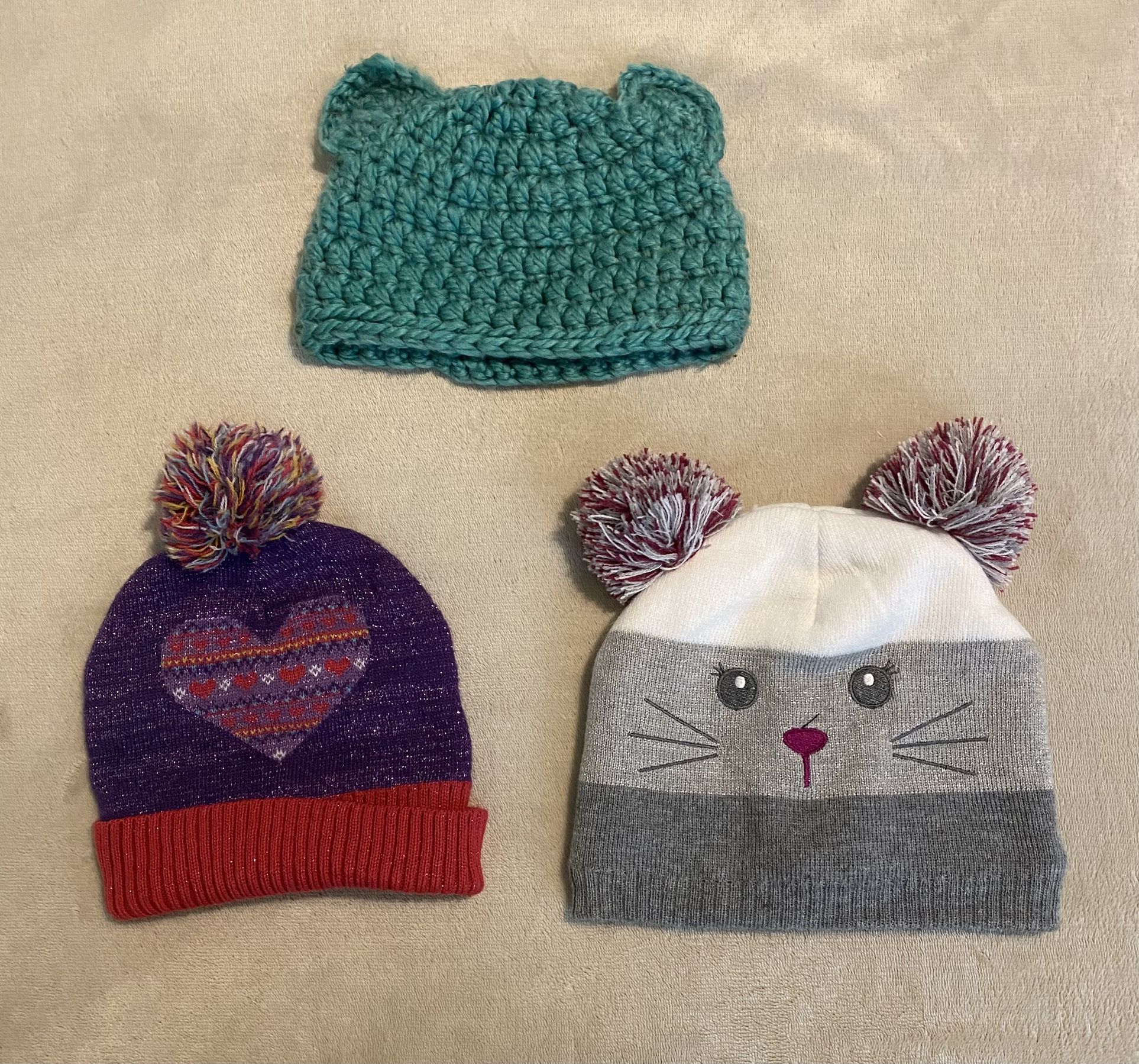 Little girl beanies Set of 3 One size fits most Girls kids children Grey / Purple beanie comes with gloves (not in picture)