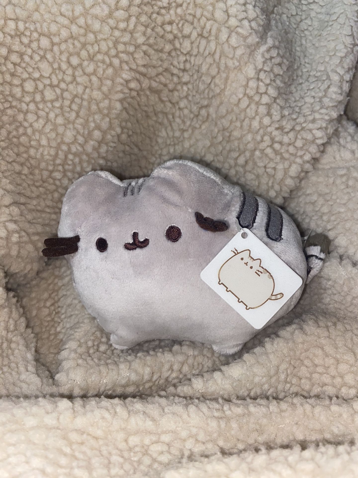 This small-sized pusheen is super cute and adorable: perfect for gifts or your own use. There’s also the tag thing where the pictures change when shifted (shown in the third picture) which is super cool. The last picture is for comparison purposes: the pusheen compared to an iPhone 7. This item is brand new and was always kept in a gift bag. Negotiations are welcomed as long as they’re reasonable.
