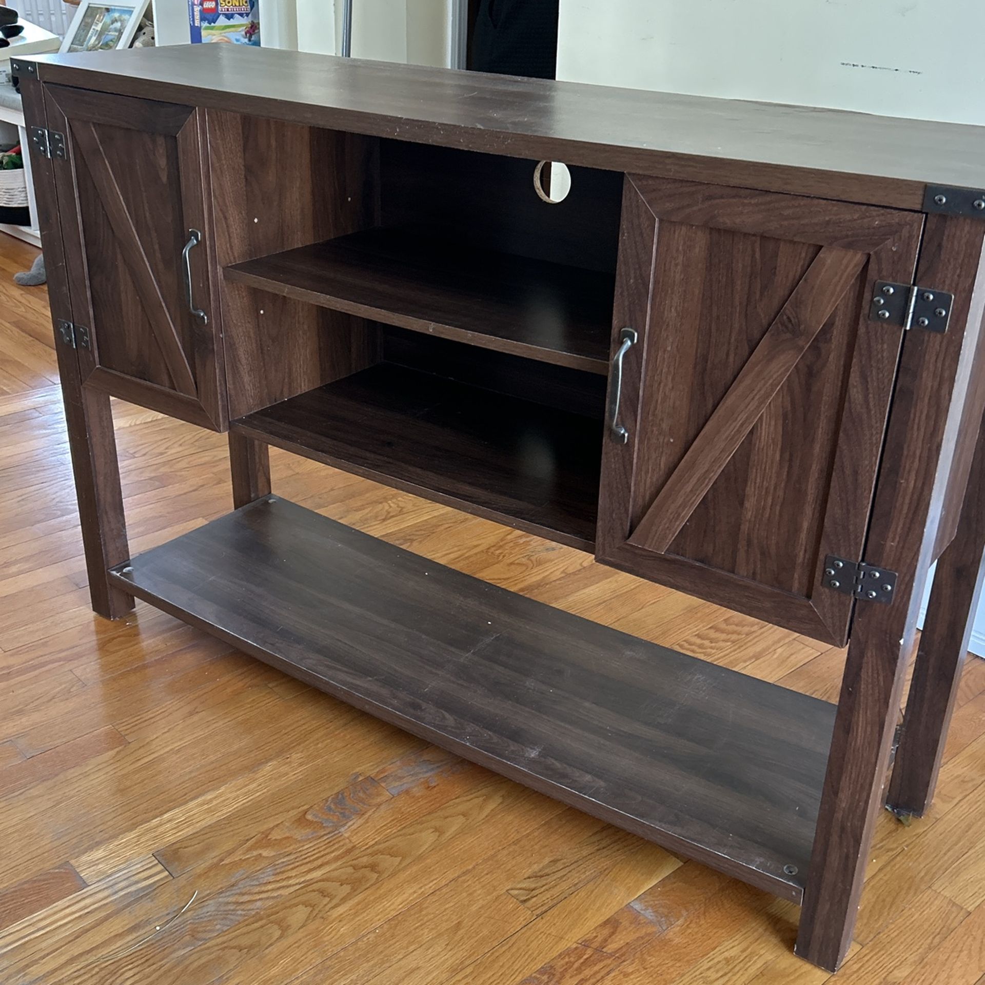 Overall Dimension: 52” x 15.5” x 35”, Net Weight: 85 LBS. The middle shelf is adjustable with 3-position, helping to arrange storage space. Assembly can be completed quickly according to clear instruction with complete parts. Surface is waterproof, cooperate with metal handle, which make it easy to clean, and also allow you to open or close the door easily.