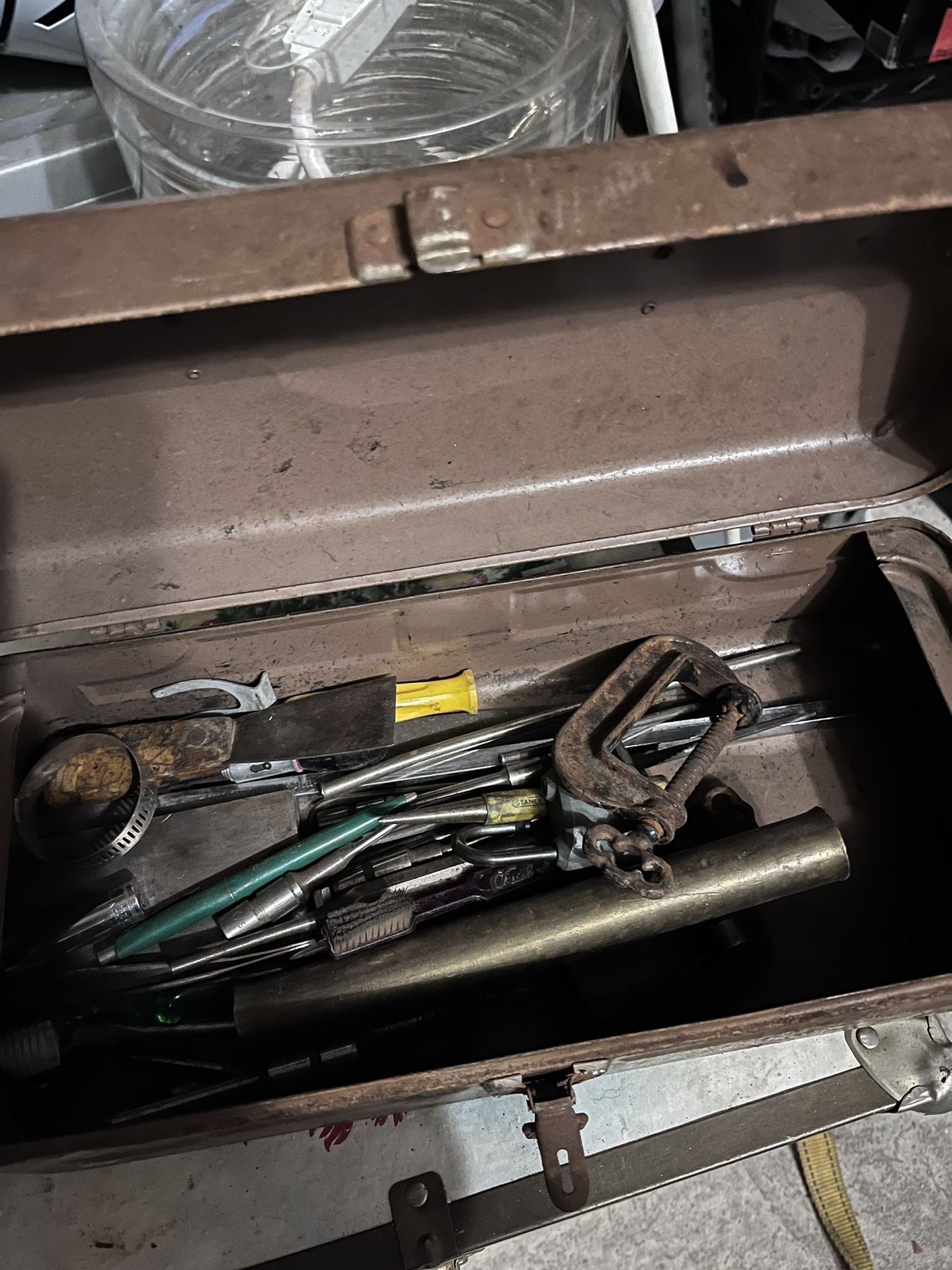 VARIOUS OLD TOOLS INCLUDES HEAVY DUTY TOOL BOX MORE TOOLS UPON REQUEST