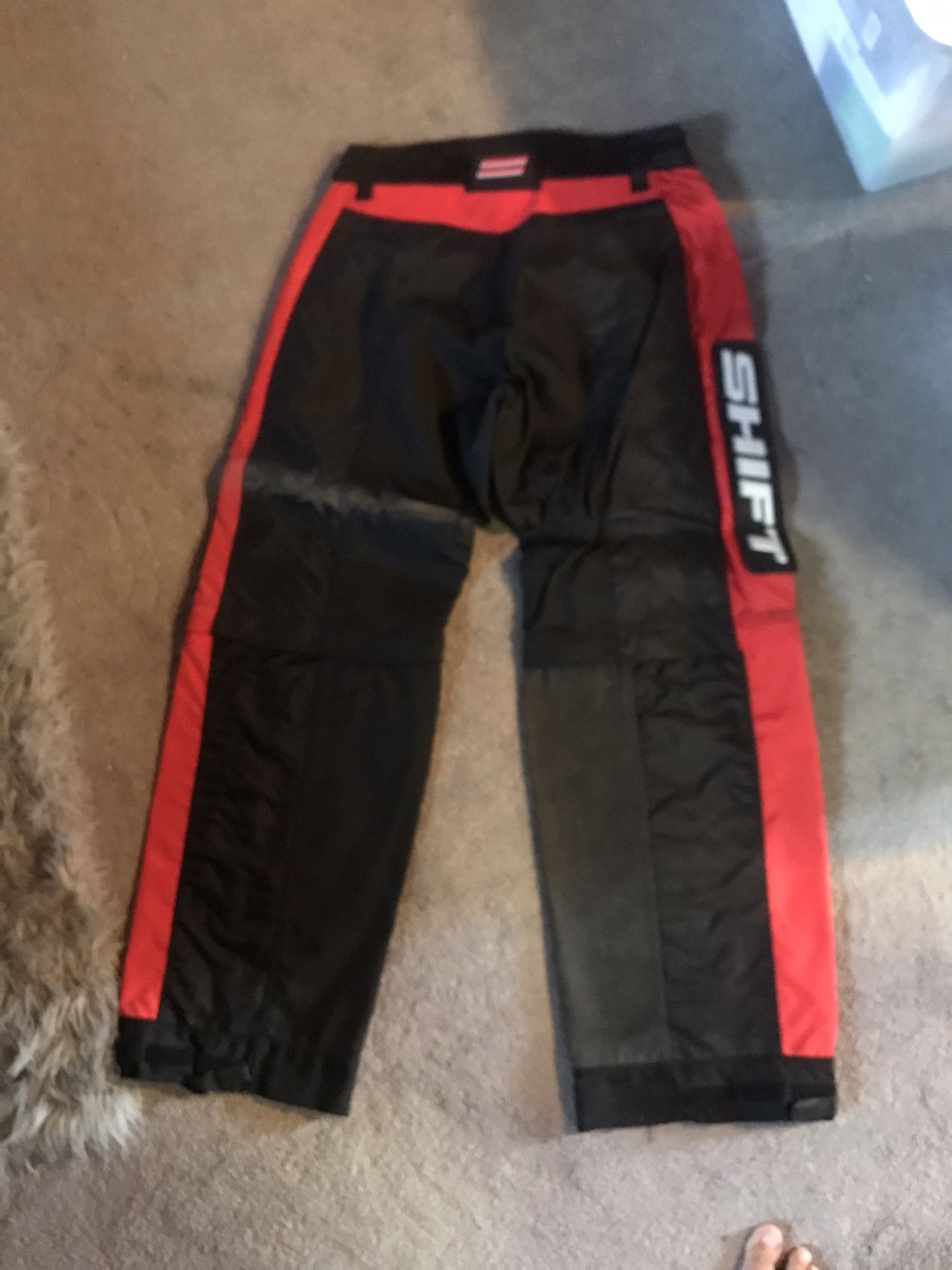 Old school quad or dirt riding pants. They are combo and turn into shorts. A bit dirty. They have been in my closet for some time now. I will also throw in the shift jersey.