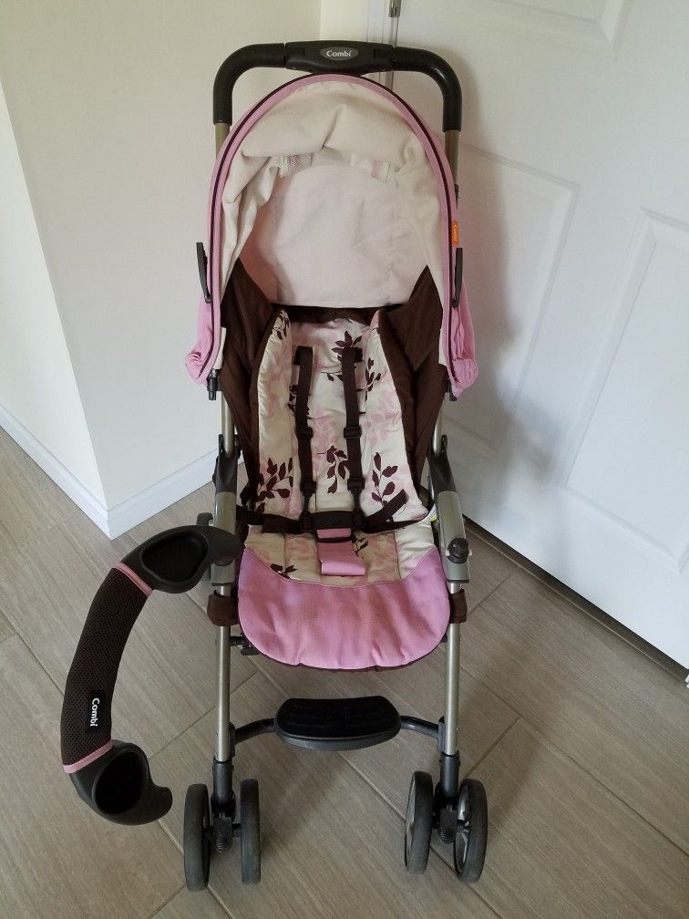 ***Firm Price *** Lightweight foldable and portable stroller with a quick and easy compact tri-fold design, self standing fold, convenient carry strap for traveling, padded multi- position reclining seat, removable washable seat pad, removable guardrail, child cup holder and snack tray, storage basket, canopy pocket, foot rest, canopy ventilation, lockable front swivel wheels.