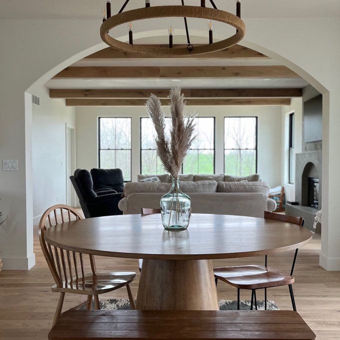 Modern Round Wood Dining Table 60” Round - New Wood Dining Table Oak Finish