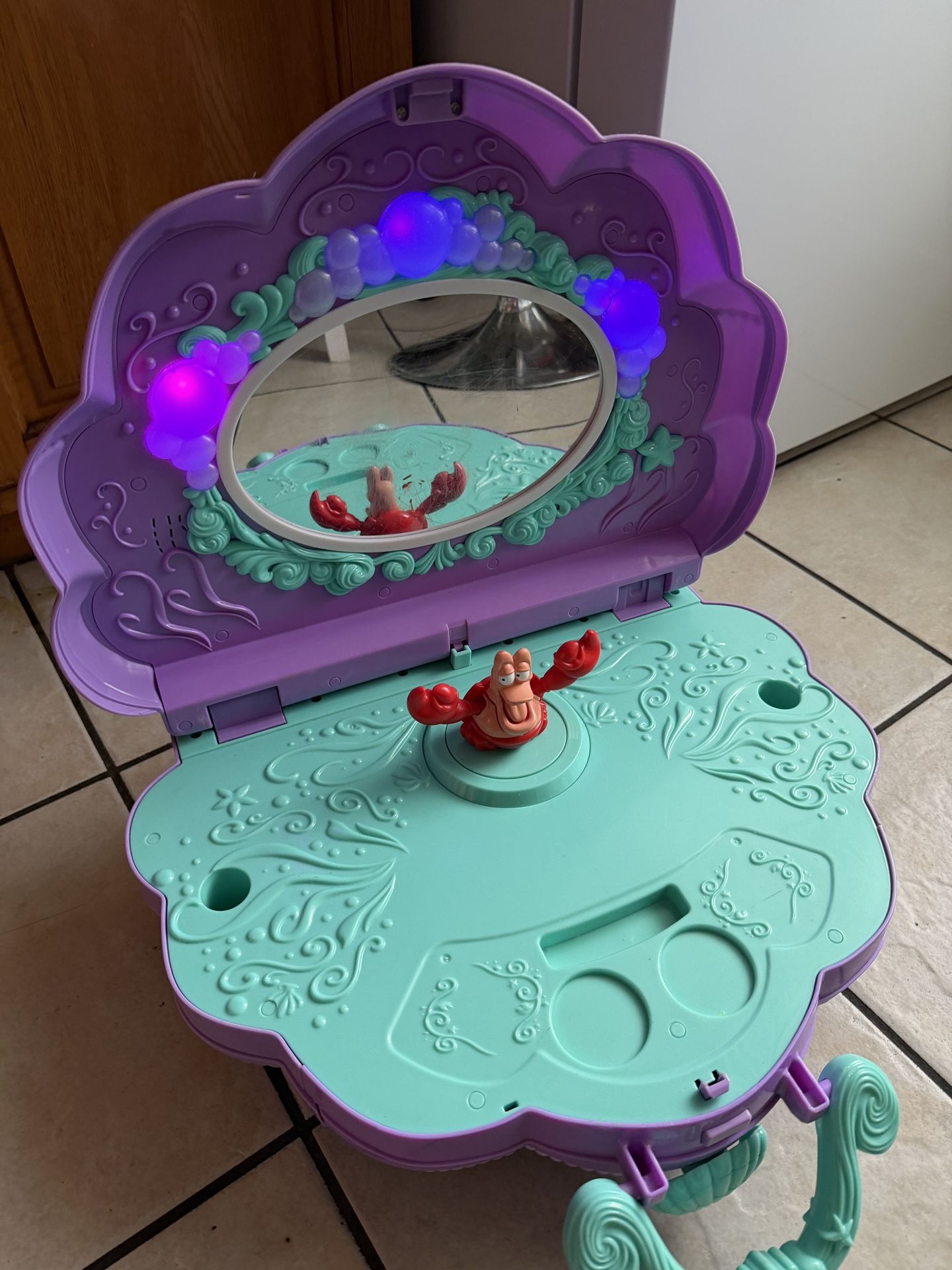 Disney Princess Ariel Vanity Shell Tabletop Vanity Play Purple Teal Lights Sound
