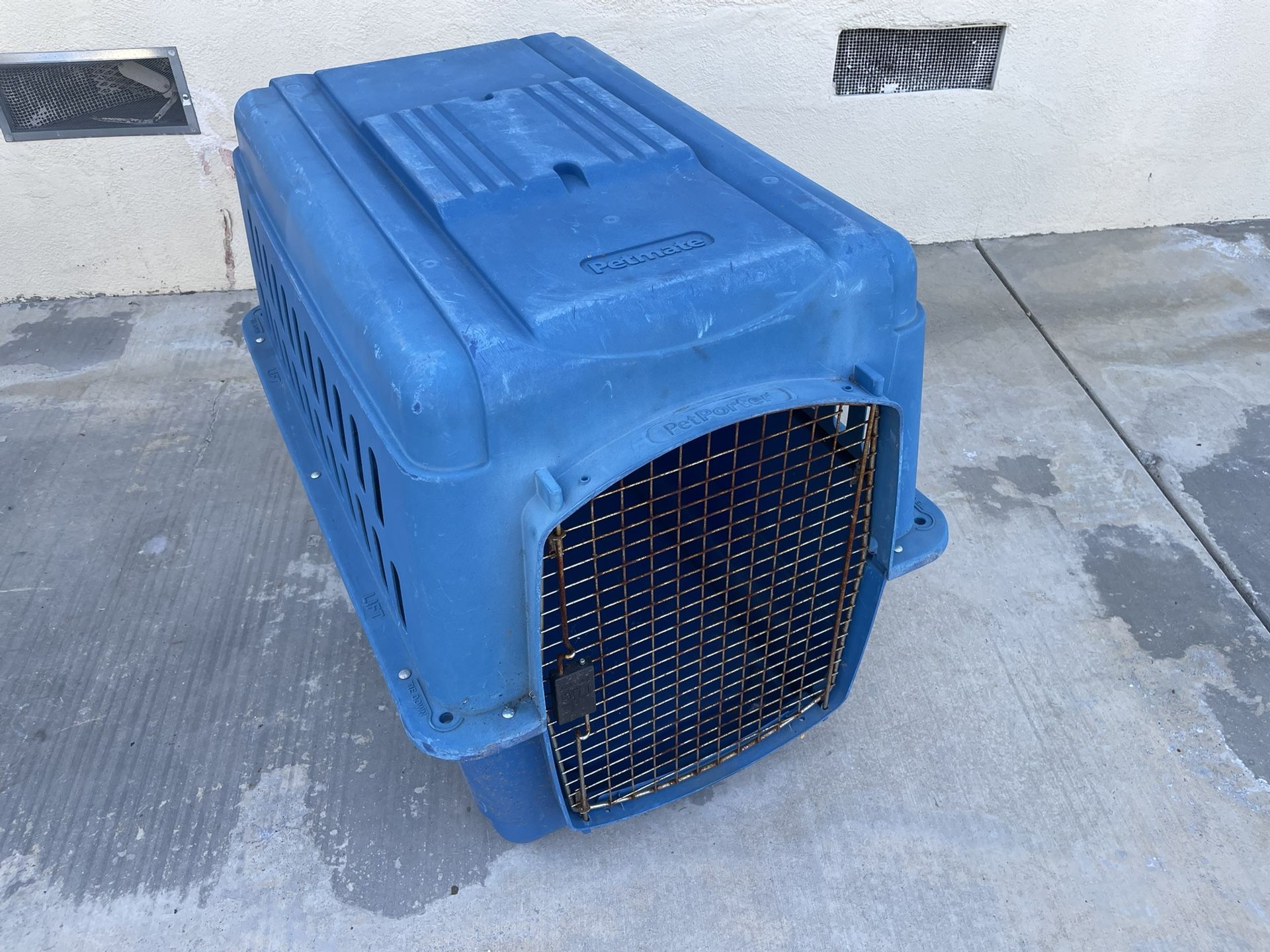 Petmate Large Dog Kennel Crate Has some scratches and scuffs. Gate is a bit rusty but still operational. Dimensions are LWH 36 x 26 x 26