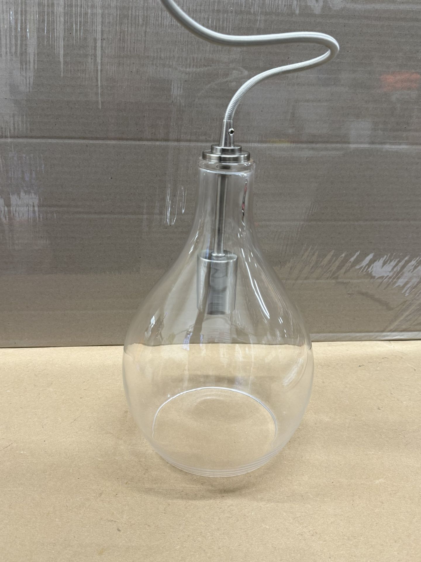 Open box Item: 6693 Collection : Reign 1 -Light Brushed nickel Transitional Clear glass shade Glass Teardrop Mini Indoor Hanging •Pendant Brushed Nickel Finish •Approved for use in dry locations •Cord adjusts up to 72 inches • One 60-watt medium base bulb required (not included)