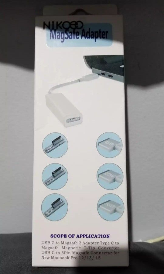Brand new in the box! $10 firm! NIKOEO USB-C Adapter Compatible for Mag-Safe 2 & 1, USB Type C to Compatible Mag-Safe L/T-Tip Charging Converter Compatible for Mac-Book Pro & Air/Chromebook Pixel/Nintendo Switch/Samsung and More Design Idea: App-le abandoned the original Mag-Safe charging connector so we couldn't use the Mag-Safe charger cable we already had. Well, this USB-C to Mag-Safe 2 adapter solves this problem entirely, it offers ability to convert older style Mag-Safe cable to charge your new Mac-Book Pro with USB C port, you will own a quick and hassle-free Mag-Safe charging cable for your new Mac-Book Pro again and preserve the value of your investment in chargers. Support Mag-Safe 2 And Mag-Safe 1 power adapter: This Mag-Safe to USB C adapter supports 45W / 60W / 85W Mag-Safe 1 (L-Tip) or Mag-Safe 2 (T-Tip) chargers without additional adapters, it also works with a Mag-Safe 1 with a Mag-Safe 1 to Mag-Safe 2 adapter. Intelligence Chip And Wide Compatibility: This USB C Mag-Safe Mac-Book Pro built-in intelligence chip to adjust the output power, the USB C OutPut supports 20V / 3A, 14.5V / 3.25A, 14.5V / 2A, 9V / 2A and 5V / 2.4A, which means it not only works with new Mac-Book Pro 12" / Mac-Book Pro 13" / Mac-Book Pro 15", but also works with other USB C laptops and phones, such as Dell NoteBook, Lenovo Yoga, Nintendo Switch, Google Pixel, Samsung Galaxy S8. Premium Material and Lightweight Design: This Type C to Mag-Safe adapter is made of premium plastic material to provide more efficient thermal radiation. Its compact and lightweight design is easy for your to take in your bag and easier to leave charger cable in different places you use instead of unplugging and plugging in wherever you go. It also perfects for traveling, enterprise, school teaching.