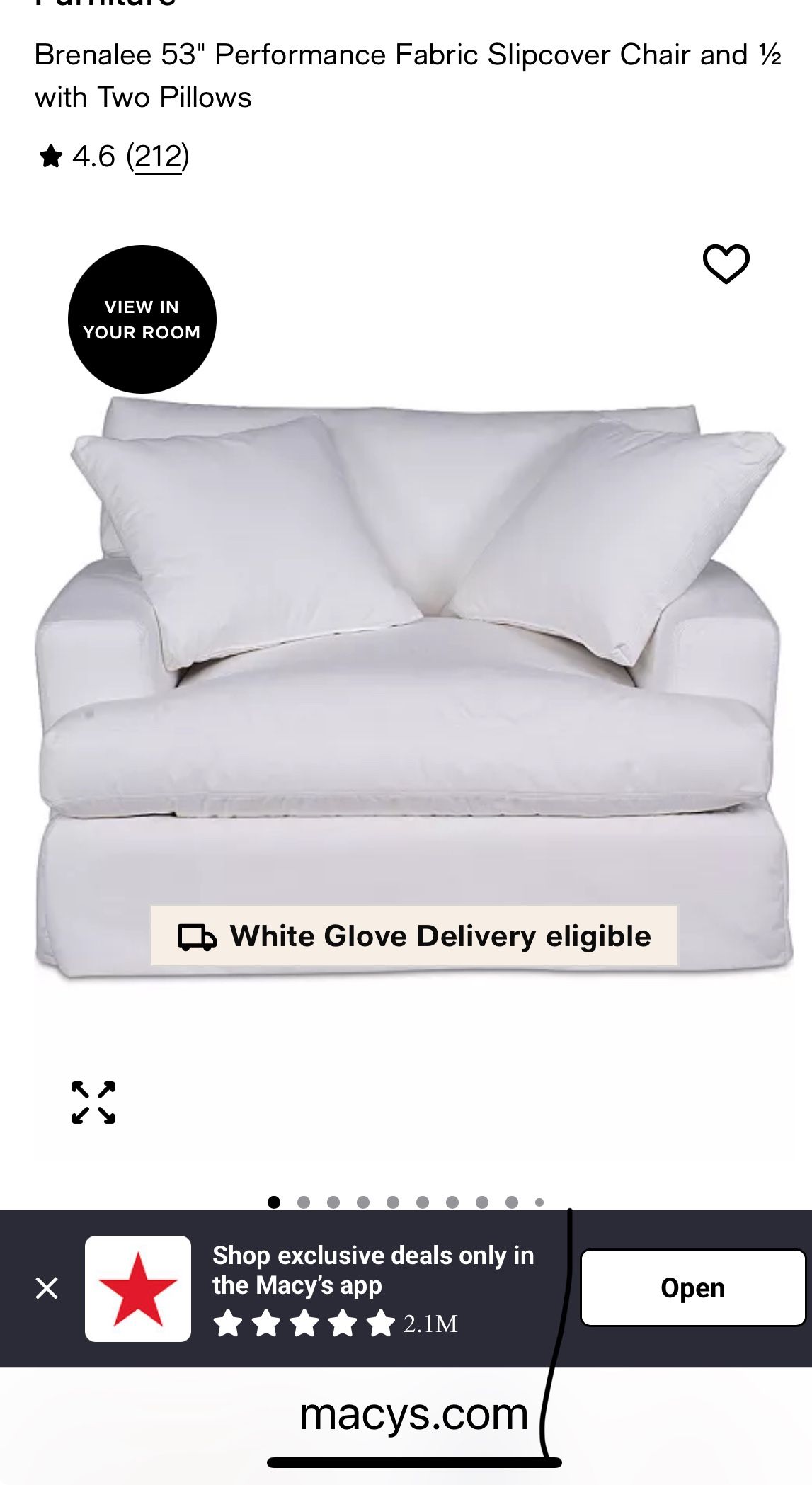 Two person slip cover style chair with down pillows new paid $1200 at Macy’s my loss your gain beautiful white color couch sofa chair
