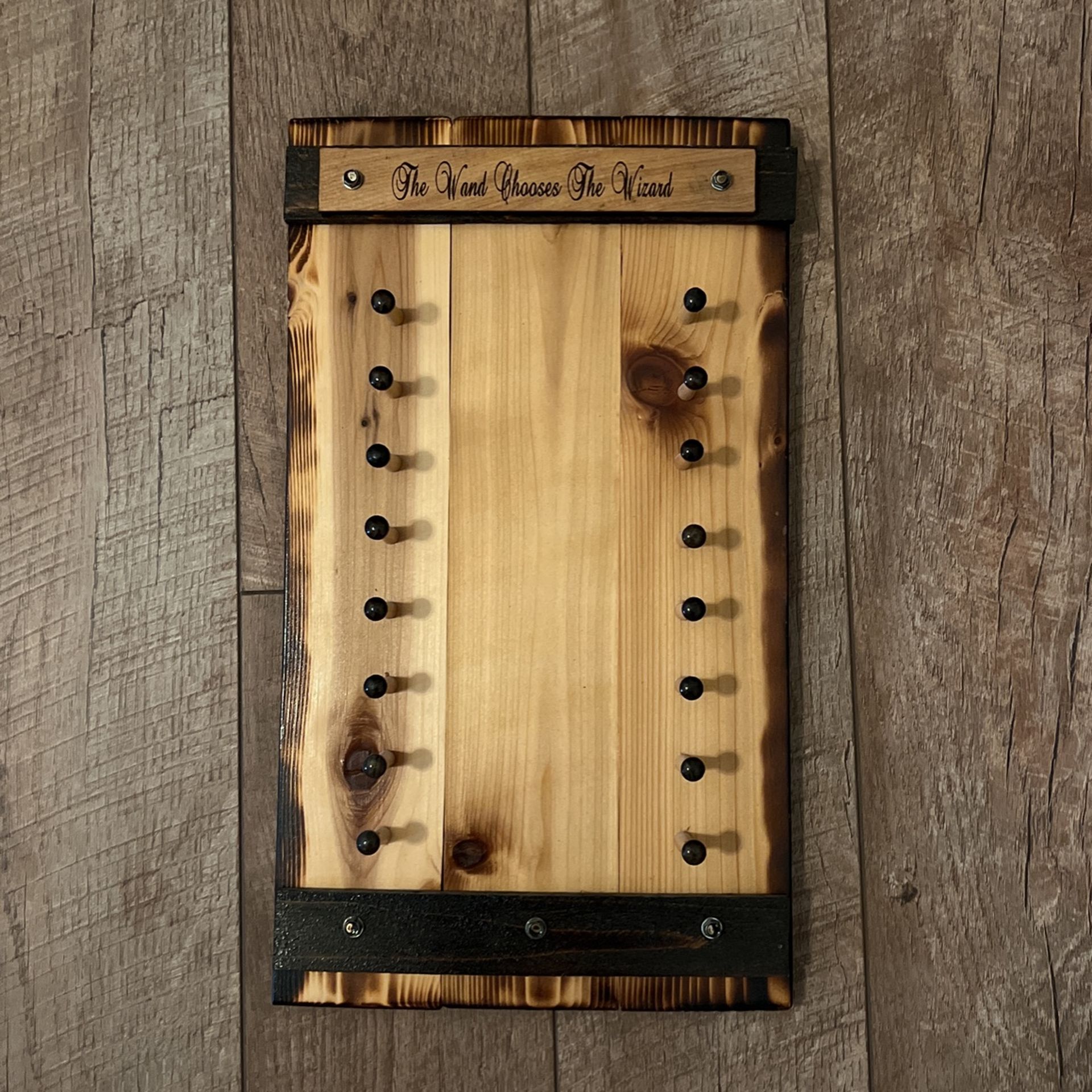 Etsy handmade wooden wand holder for Harry Potter wands.