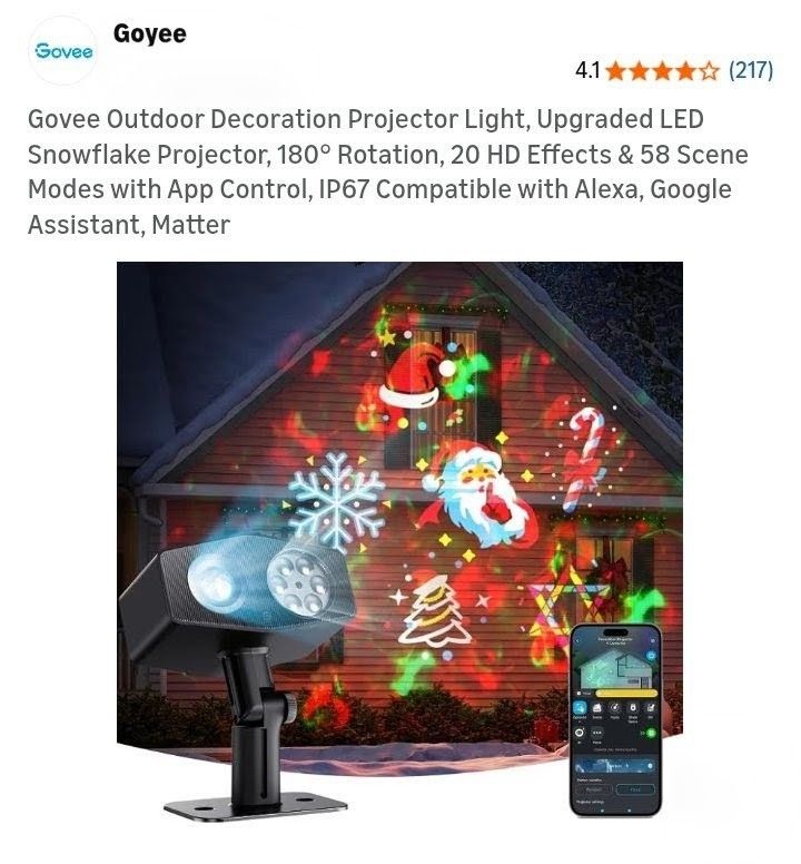 NEW IN BOX GOVEE OUTDOOR/ INDOOR DECORATION PROJECTOR LIGHT 180⁰ ROTATION APP CONTROL FOR ALL YEAR USE INDOOR/OUTDOOR USE PERFECT FOR CEALING LIGHT UP VALENTINE, HALLOWEEN, CHRISTMAS, EASTER....ALL HOLIDAYS