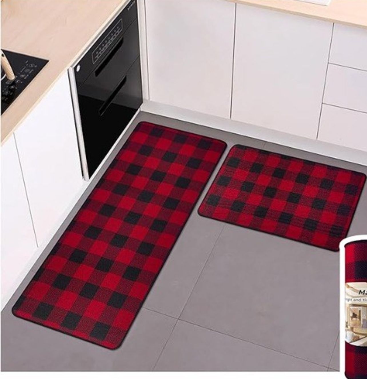 Description Buffalo Check Plaid Kitchen Rug Set - 2PCS (20x32 & 20x56) Farmhouse Style Non-Printed Woven Surface Non-slip Machine Washable Black & Red
