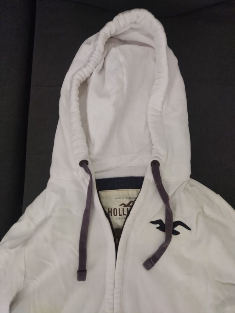 HOLLISTER HOODED SWEATER WHITE ZIP UP NICE THICK COMFY HOOD, LONG SLEEVES,