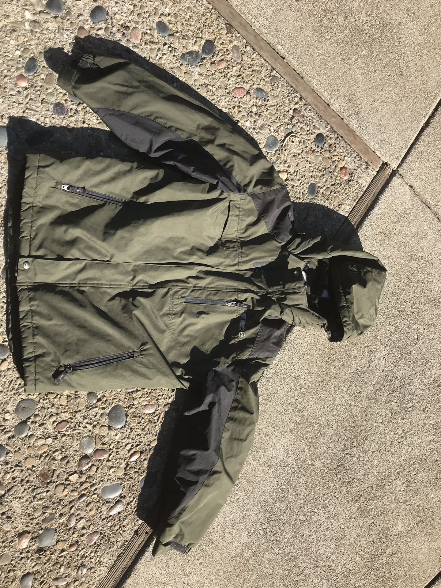 Boys 14/16 XL, Green and black, Snowboard/ski jacket w detachable hood. Gently used, Used a couple of times by my son before he outgrew it. From a smoke free home. No tears or rips, zippers all work well. Excellent condition.